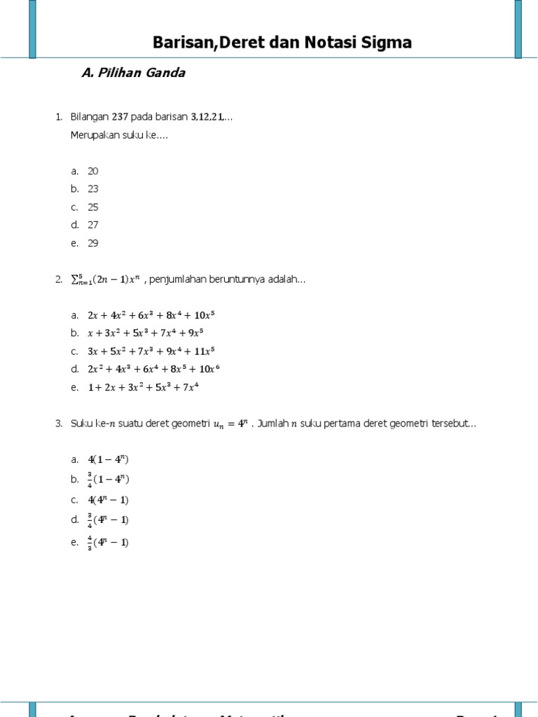 Soal Pilihan Ganda Barisan Dan Deret / Soal Baris Dan Deret Kelas 8 Kurikulum 2013 Semester 1 Masnurul - Pada pembahasan sebelumnya dengan judul.