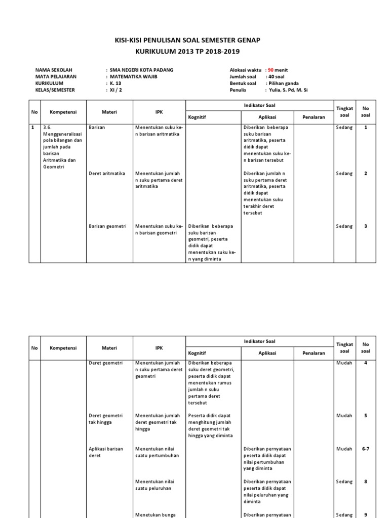 untuk "Soal Pilihan Ganda Barisan Dan Deret / Soal Baris Dan Deret Kelas 8 Kurikulum 2013 Semester 1 Masnurul - Pada pembahasan sebelumnya dengan judul."