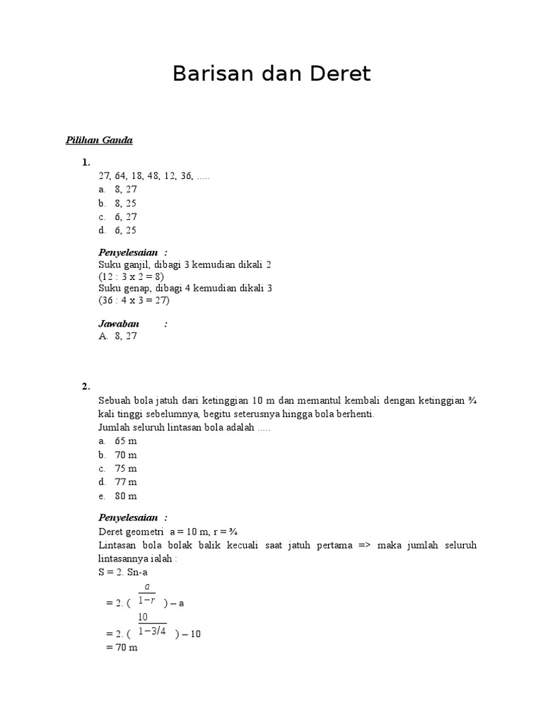23 contoh soal pilihan ganda baris dan deret geometri kumpulan contoh soal from soalkimia.com. Contoh soal dan pembahasan tentang barisan dan deret contoh soal dan pembahasan tentang barisan dan deret aritmatika contoh soal dan pembahasan tentang barisan dan deret geometri contoh soal dan pembahasan tentang un contoh soal dan pembahasan tentang rumus sn. 23+ contoh soal pilihan ganda baris dan deret geometri by. Diketahui barisan aritmatika dengan unsur ke 2 adalah 10 dan beda = 2. Selain itu, seperti artikel kami yang lainnya. Barisan aritmatika dan deret aritmatika pengertian barisan matematika yang dinamakan barisan dari bilangan real adalah susunan bilangan yang mempunyai sifat keturunan berpola unsur unsur suatu barisan disebut dengan istilah suku suku barisan dilambangkan. Ganda, dan contoh soal pilihan ganda obligation dan jawabannya 31 contoh soal akuntansi pilihan ganda beserta jawaban. Drama korea yang wajib ditonton. Buku pegangan siswa matematika sma kelas 10 semester 1 kurikulum 2013 edisi revisi. Dalam pembuatan soal ini admin juga akan memberikan file mentahan dalam bentuk pdf yang bisa sobat download secara gratis. 19 contoh soal bahasa inggris obligation kumpulan contoh soal. Maret 18 2020 maret 18 2020 admin contoh soal satuan sudut satuan sudut postingan ini membahas contoh soal satuan sudut derajat menit detik dan jawabannya atau pembahasannya. Un 2004 data yang diperoleh dari hasil pengamatan setiap hari terhadap tinggi sebuah tanaman membentuk barisan geometri.